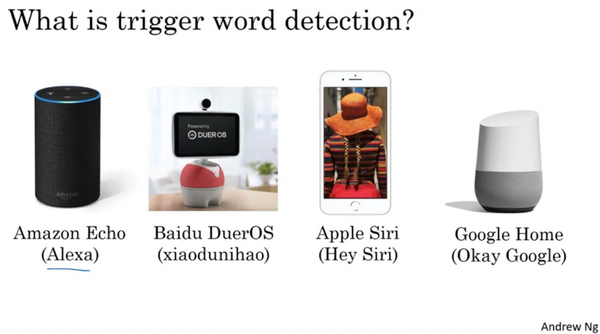 假如音频片段中的这一点是某人刚刚说完一个触发字,比如"Alexa",那么在这一点之前,可以在训练集中把目标标签都设为0,在这个点之后把目标标签设为1。假如在一段时间之后,触发字又被说了一次,那么就可以再次在这个点之后把目标标签设为1