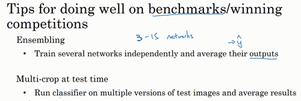 集成的一个大问题是需要保持所有这些不同的神经网络,占用了更多的计算机内存。multi-crop,只保留一个网络,不会占用太多的内存,但仍然会让运行时间变慢