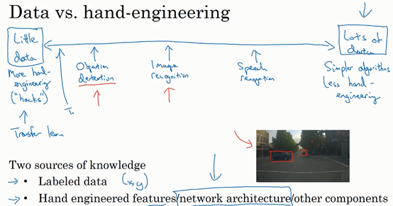 当有很多数据时,倾向于使用更简单的算法和更少的手工工程,只要有一个大型的神经网络,甚至一个更简单的架构,就可以去学习它想学习的东西