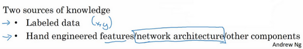 第二个来源是手工工程,有很多方法去建立一个手工工程系统,它可以是源于精心设计的特征,手工精心设计的网络体系结构或者是系统的其他组件。当没有太多标签数据时,只需要更多地考虑手工工程