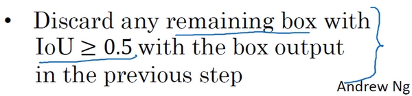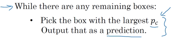 如果同时检测三个对象,比如说行人、汽车、摩托,输出向量就会有三个额外的分量。正确的做法是独立进行三次非极大值抑制,对每个输出类别都做一次