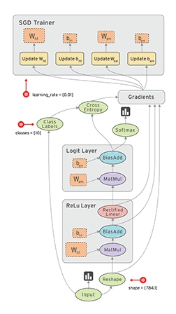 训练模型时tensor会不断的从数据流图中的一个节点flow到另一节点, 这就是TensorFlow名字的由来.